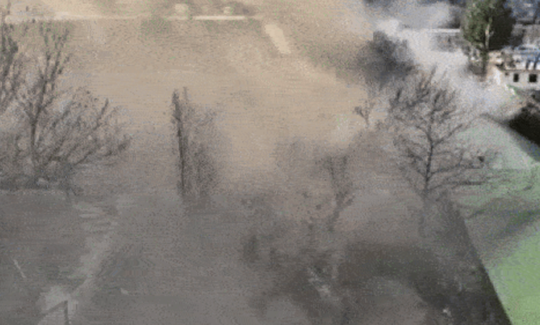 आसमान में काला धुआं और उठी ऊंची लपटें