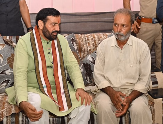 मुख्यमंत्री नायब सिंह सैनी ने रविवार को कलायत में नायक स्व. पंकज राणा के घर पहुंच कर उन्हें श्रद्धासुमन अर्पित किए। मुख्यमंत्री ने परिवारजनों से मुलाकात की और उनका ढांढस बंधाया। उन्होंने सैनिक के पिता शमशेर, बड़े भाई रवि सहित अन्य परिजनों से मुलाकात की।