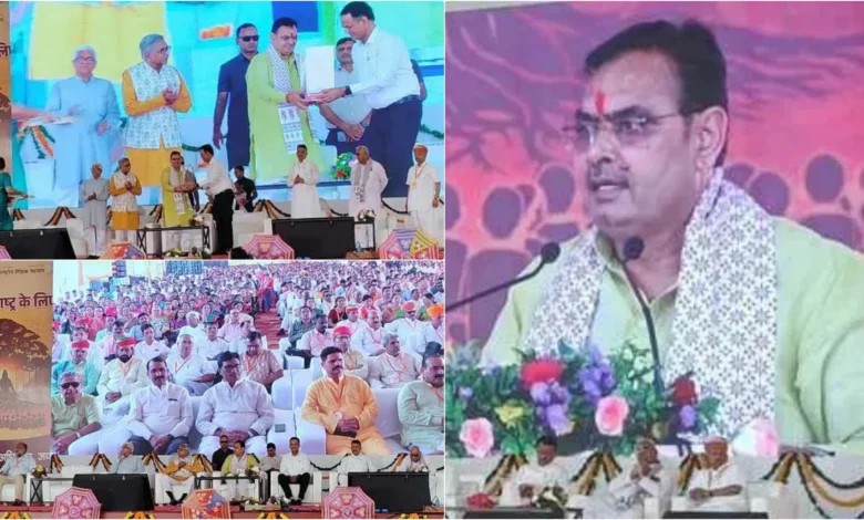 मुख्यमंत्री भजनलाल शर्मा ने अपने संबोधन में कहा कि भारत में गुरु-शिष्य परंपरा विश्व में अद्वितीय रही है। शिक्षक न केवल विद्यार्थियों के जीवन में मार्गदर्शक होते हैं, बल्कि वे राष्ट्र निर्माण की दिशा में सबसे बड़ी भूमिका निभाते हैं। उन्होंने कहा कि नई शिक्षा नीति 2020 को प्रभावी रूप से लागू करना सरकार की प्राथमिकता है ताकि युवाओं को रोजगारपरक और कौशल आधारित शिक्षा मिल सके। मुख्यमंत्री ने इस अवसर पर अधिवेशन की स्मारिका, ‘हमारा विद्यालय हमारा तीर्थ’ पुस्तक और वार्षिक कैलेंडर का विमोचन भी किया। उन्होंने इस सम्मेलन को ‘राष्ट्र निर्माण का महायज्ञ’ बताते हुए कहा कि राज्य सरकार युवाओं को रोजगार देने और शिक्षा को आधुनिक स्वरूप देने के लिए प्रतिबद्ध है।