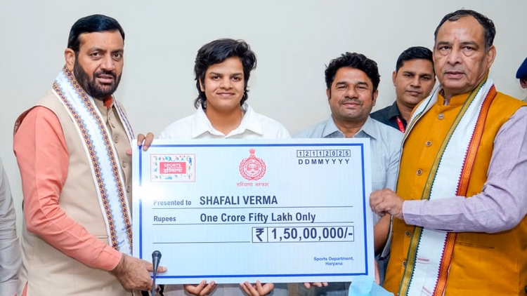 हरियाणा सरकार की तरफ से 1.50 करोड़ का कैश अवार्ड और ग्रेड ए ग्रेडेशन सर्टिफिकेट दिया गया। हरियाणा महिला आयोग ने भी शेफाली को अपना ब्रांड एंबेसडर नियुक्त किया। सीएम ने कहा कि शेफाली ने ना केवल प्रदेश बल्कि पूरे देश का मान बढ़ाया। शेफाली पूरे देश के युवाओं के लिए प्रेरणास्रोत है। शेफाली वर्मा ने परिवार सहित हरियाणा सरकार का धन्यवाद किया है। उन्होंने कहा कि पूरे देश में हरियाणा खेलों का रोल मॉडल है। उन्होंने खिलाड़ियों को प्रोत्साहित करने के लिए हरियाणा सरकार का धन्यवाद किया।